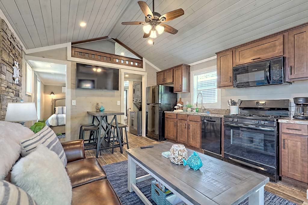 We currently have two Berry model homes in our community that we offer to our prospective residents to come visit and experience tiny home life, the community amenities, and all that the Lake Burton area has to offer.